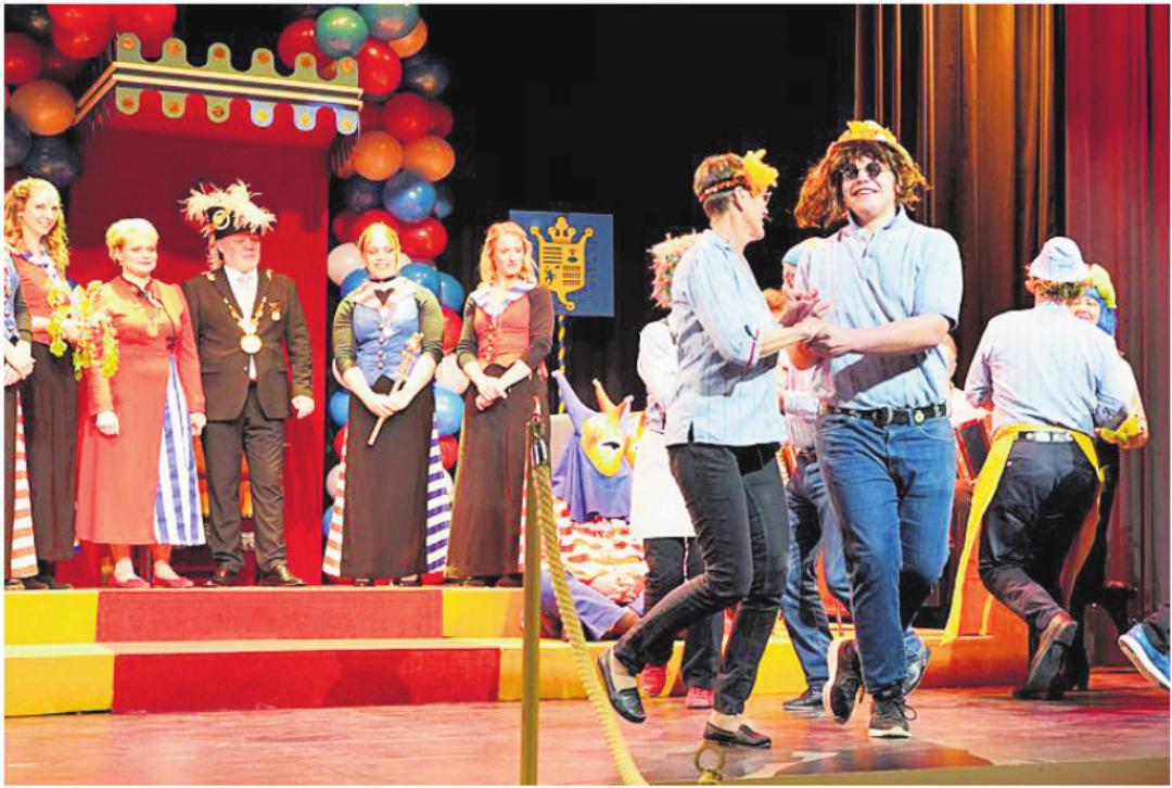 Anstelle der Trachten wurden an diesem Fasnachtsabend Edelweisshemden mit fasnächtlichen Details wie Perücken, Hüte oder Brillen getragen. Als Einmarsch der Huldigung spielte die Trachtenmusik das Stück «uf höche Bärge». Dabei standen die zahlreich anwesenden Trachtenleute mit Regenschirmen und Wanderstöcken Spalier für die Tänzerinnen und Tänzer. Ganz im Geheimen hat nämlich Dominic für seine Eltern einen Tanz, «d’Räbevater-Polka», geschrieben. Riesig waren die Emotionen sowie der Stolz, als zehn Paare den Tanz an der Inthronisation uraufführen durften. Silvan, Andrea, aber auch Martin Hotz (Alt-Räbevater und Grossvater von Dominic) mussten sich die eine oder andere Träne aus den Augen wischen.