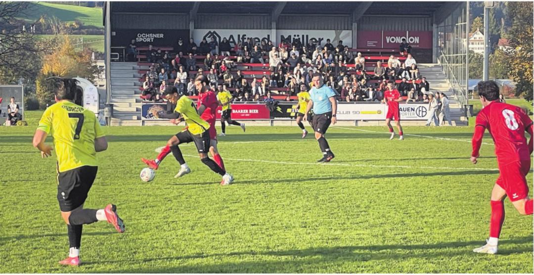 Wenig später kam es erneut zu einer gefährlichen Szene im Baarer Strafraum, die noch glimpflich endete. Kurz vor der Pause verlor Baar im Mittelfeld erneut unnötig den Ball. Torhüter Buob kam beim Herauslaufen einen Tick zu spät, und Stampfli verwandelte den fälligen Strafstoss souverän zum 0:2 (45.). Die Körpersprache der Einheimischen sprach zu diesem Zeitpunkt Bände.