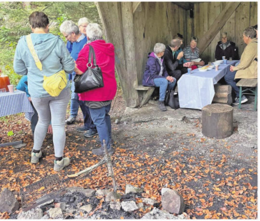 Eine willkommene Pause gab es beim Unterstand Bannholz, wo wir uns mit Getränken und feinem Speckzopf stärkten.