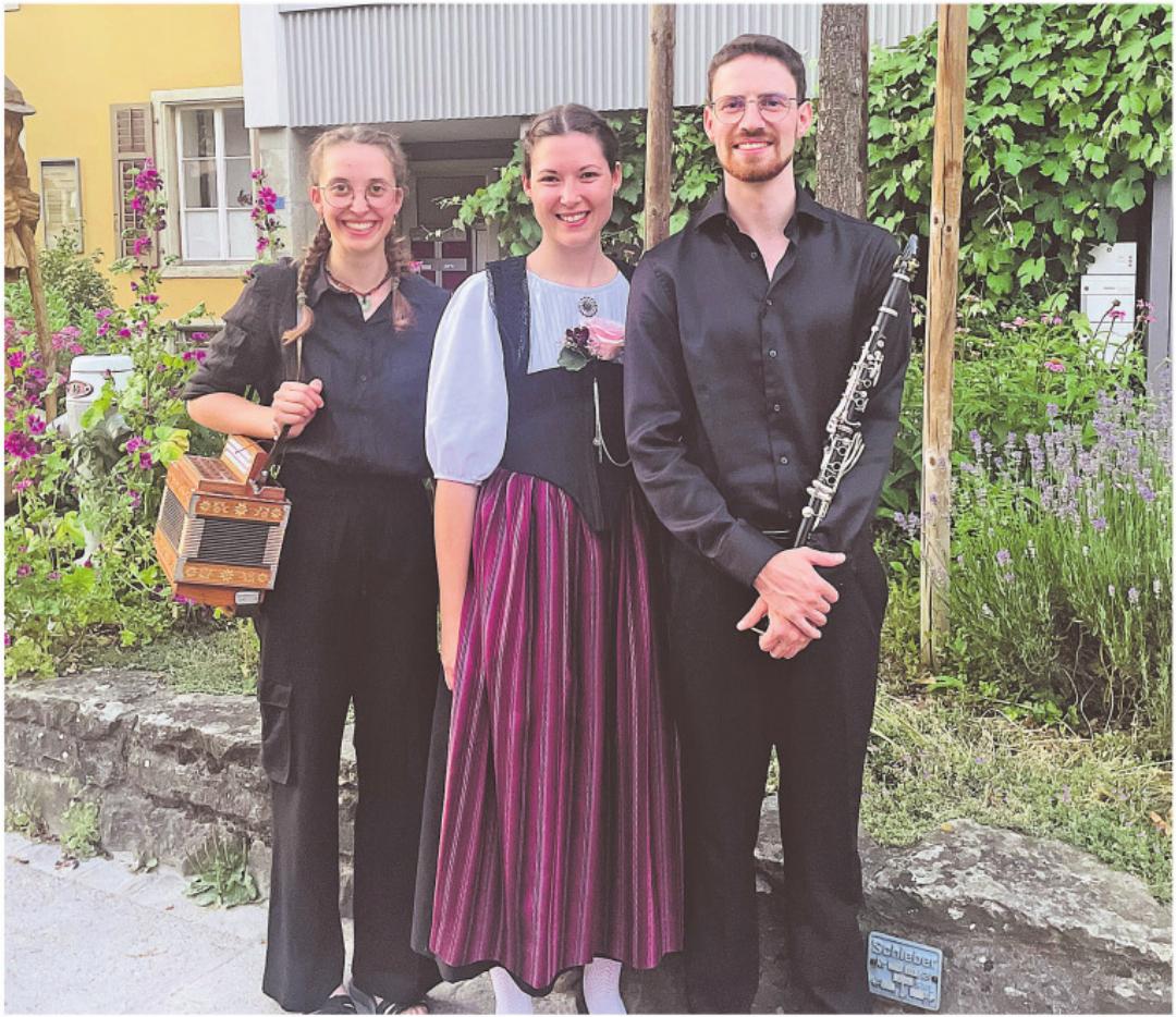Die beiden jungen Musikerinnen und der Musiker begeistern mit ihrem breiten Repertoire, das traditionelle, moderne und selbstkomponierte Stücke umfasst. Dank ihres Studiums an der Hochschule Luzern haben sie sich gefunden und präsentieren seit 2024 ihre Musik leidenschaftlich bei verschiedenen Veranstaltungen.